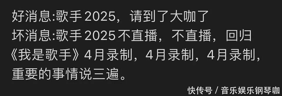 本年的威望亦然一变再变,网友曝光的大瓜是:诚然不直播了,关联词请来一个大咖歌手。